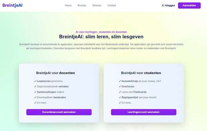 AI voor het Nederlandse onderwijs waarmee docenten onder andere lesplannen kunnen maken en direct printen en leerlingen flashcards kunnen maken en nog veel meer. Draait volledig op Open AI API.